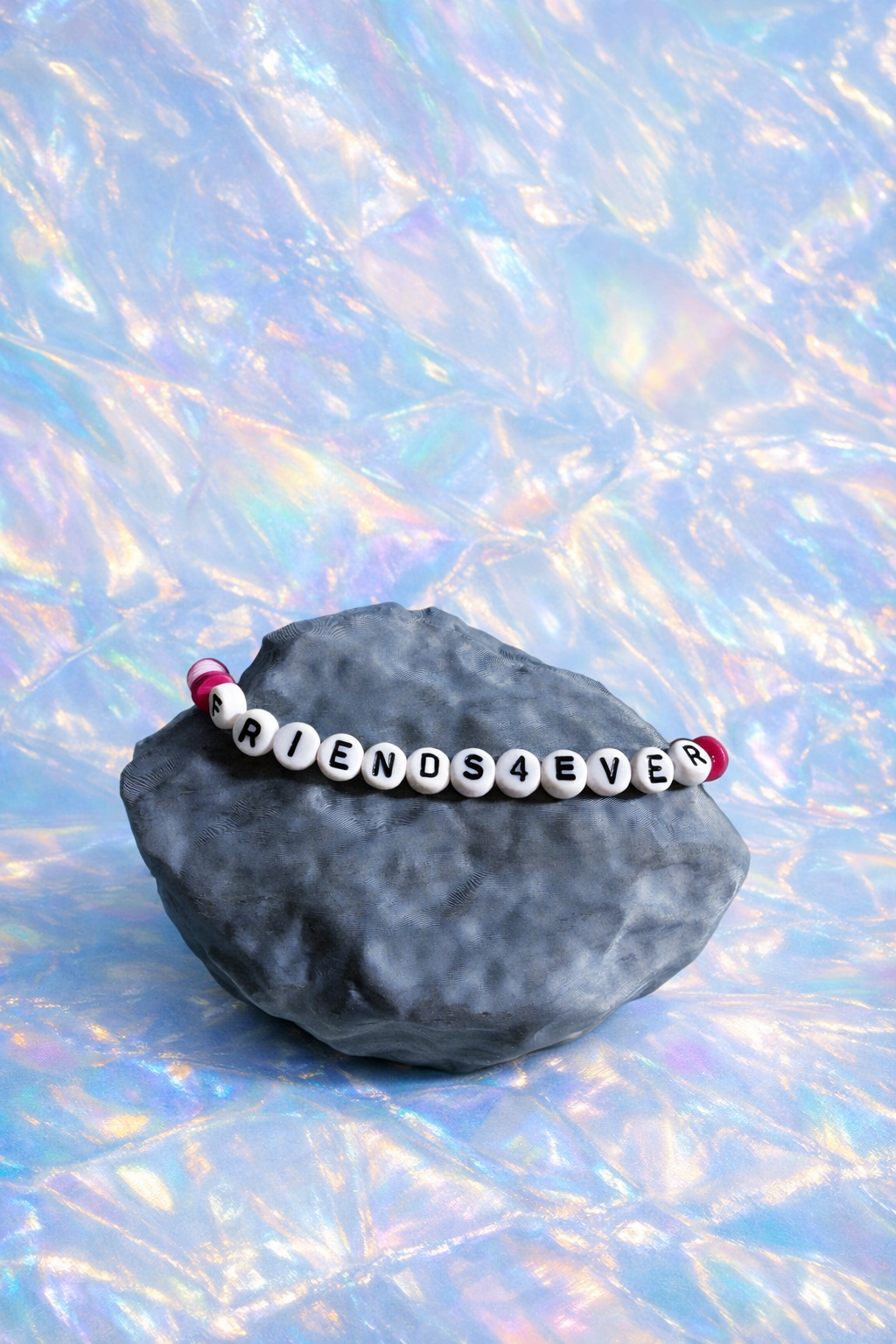 Each Pet Rock™ comes styled with a FRIENDS4EVER bracelet, symbolising unbreakable bonds, emotional stability, and the quiet confidence of geological time.